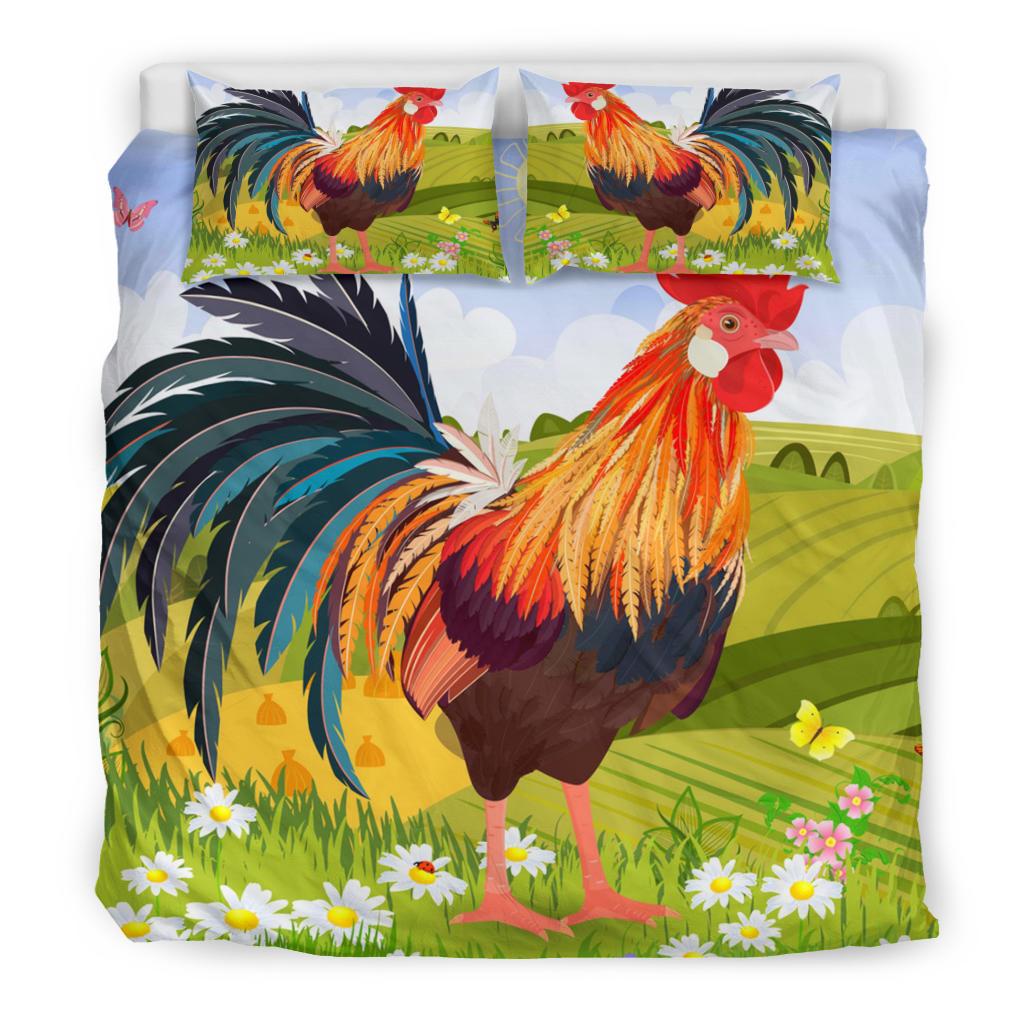 Feature of Beautiful Cartoon Rooster in Garden Bedding Set: