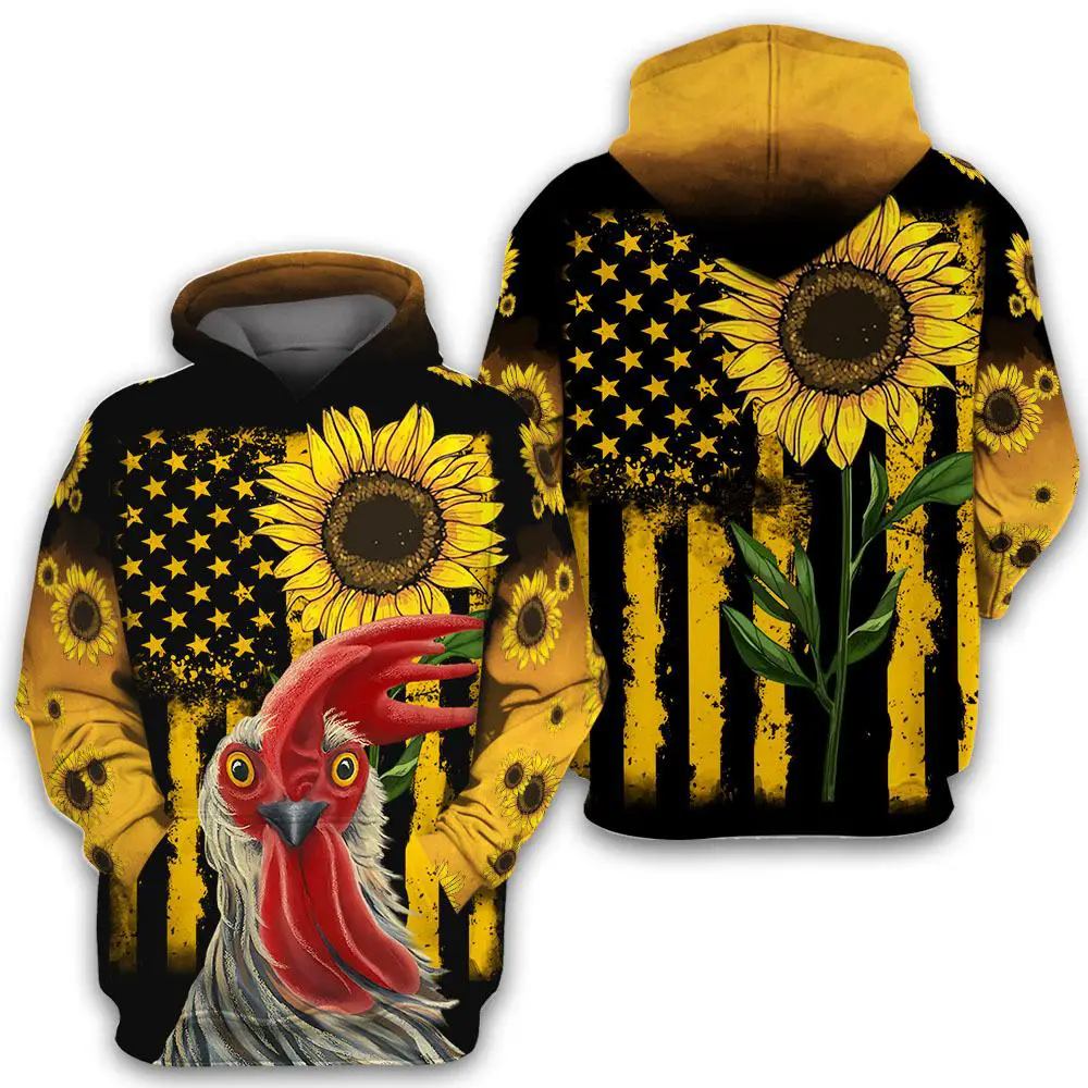- Product name: Rooster Chicken and Sunflower All Over Print 3D Hoodie