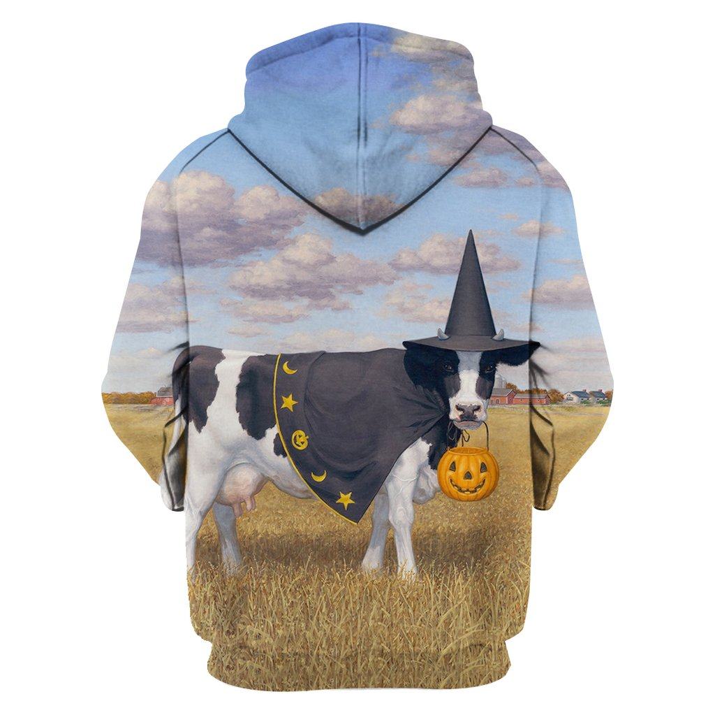 Funny Cow with Witch Hat & Pumpkin Cow Halloween 3D Hoodie