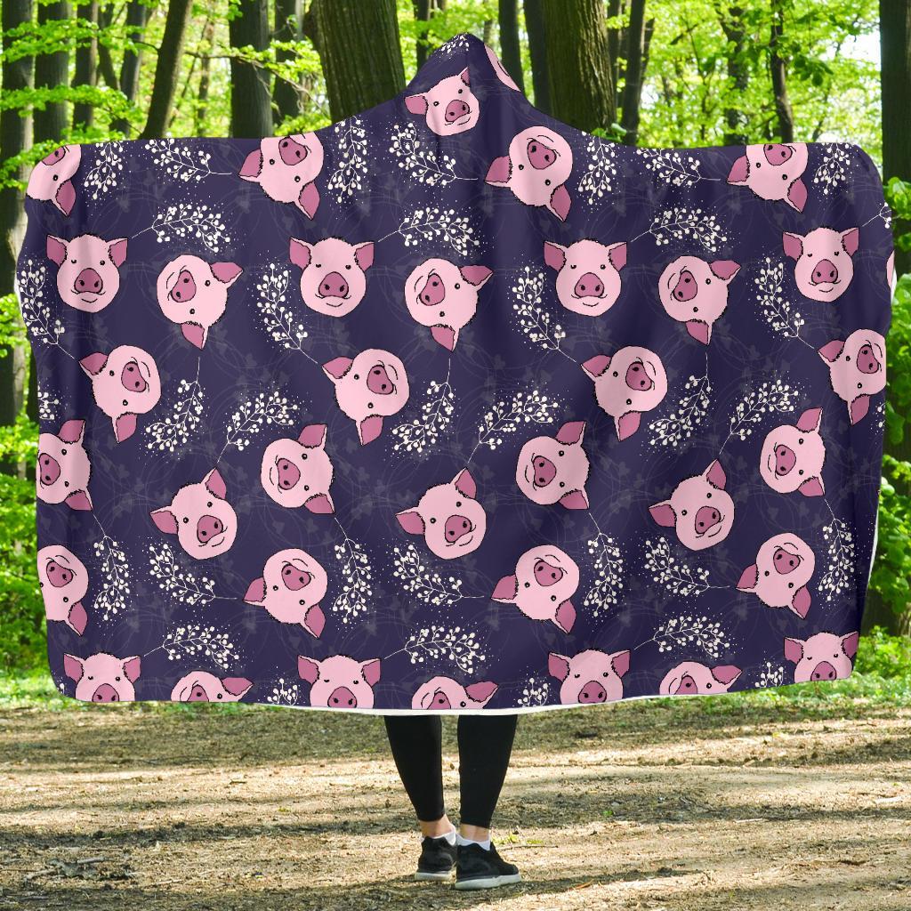 Pig Head and Biden Flowers Pattern Hooded Blanket