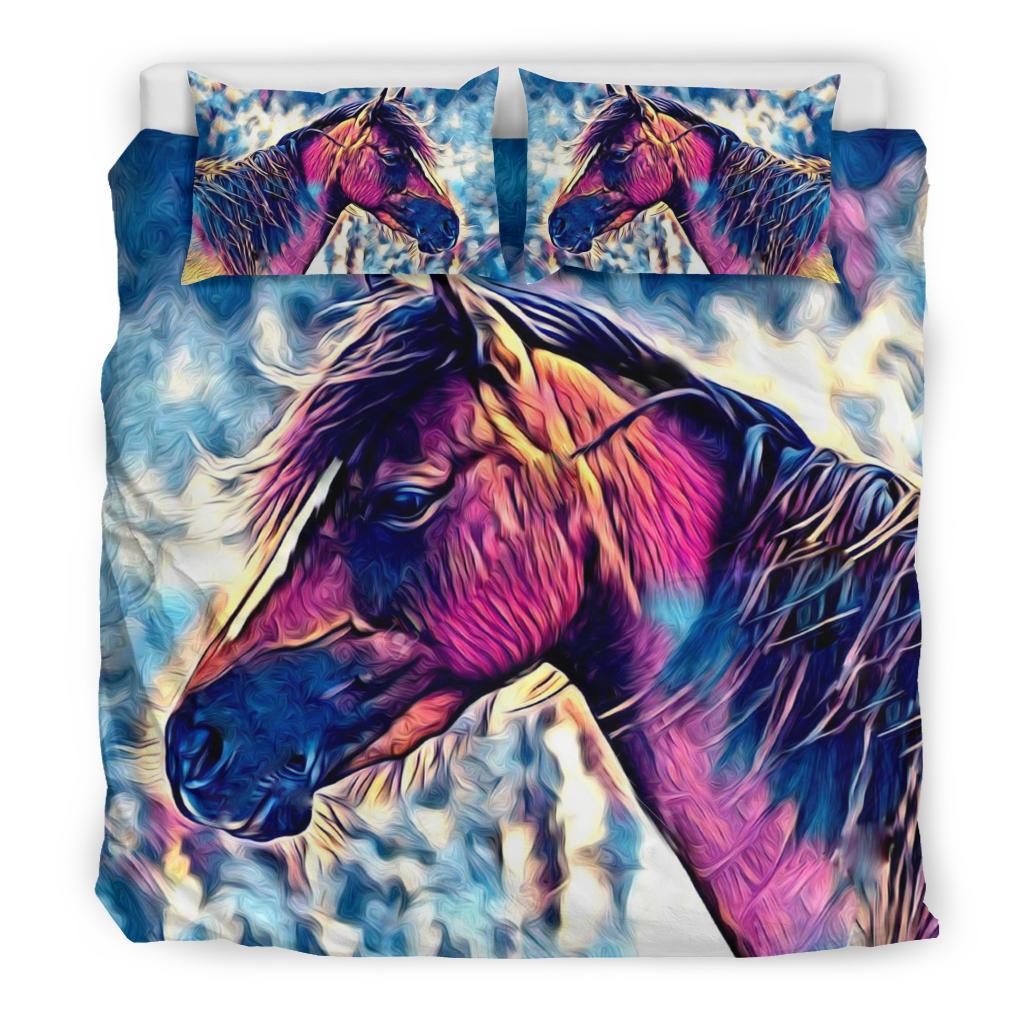 Realistic Colorful Horse Head Bedding Set