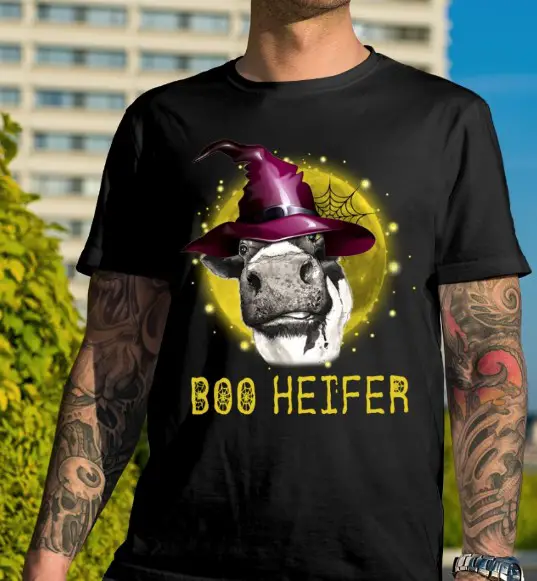 Heifer is the name for the cow and is also a funny name that cow lovers often use to print on t-shirts. This Boo Heifer Shirt would be the perfect Halloween wear for those who think about cows all day long like cattle farmers or cattler ranchers.