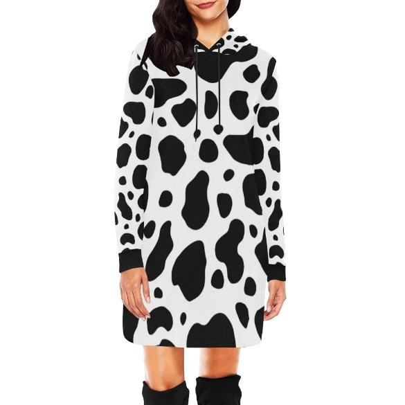 With the characteristic image of a cow’s white and black fur, this hoodie dress is sure to make you stand out from the crowd, and more specifically, it is a perfect gift for dairy cow lovers